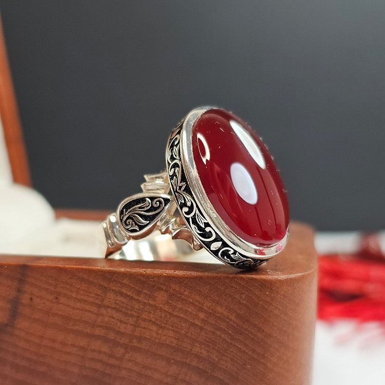 🟢انگشتر عقیق سرخ خراسانی مردانه