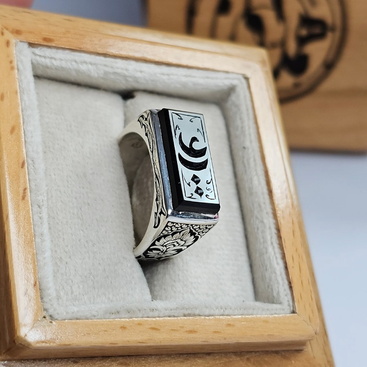 انگشتر عقیق مشکی خراسانی اسپرت