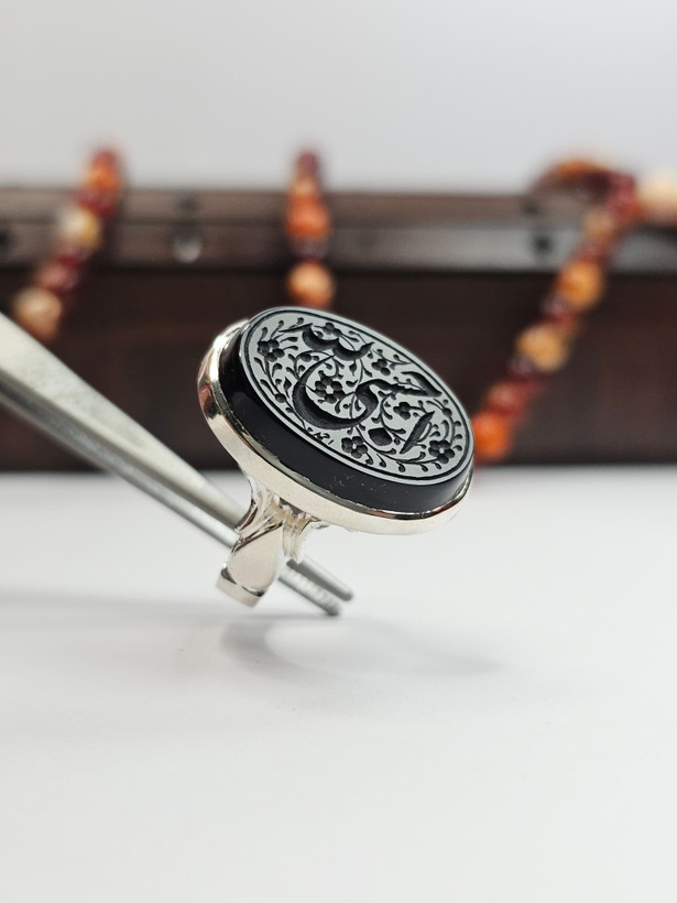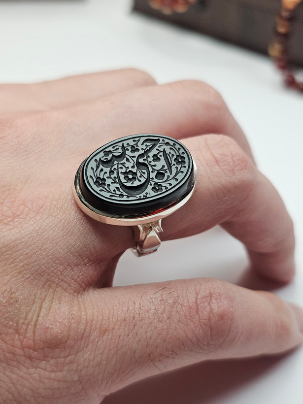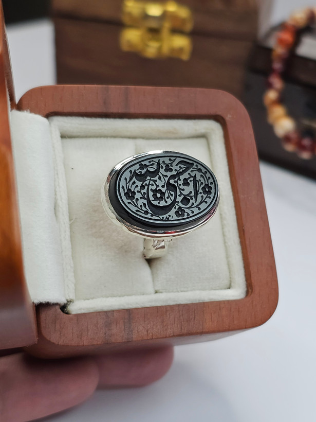 انگشتر عقیق مشکی خراسانی دستساز
